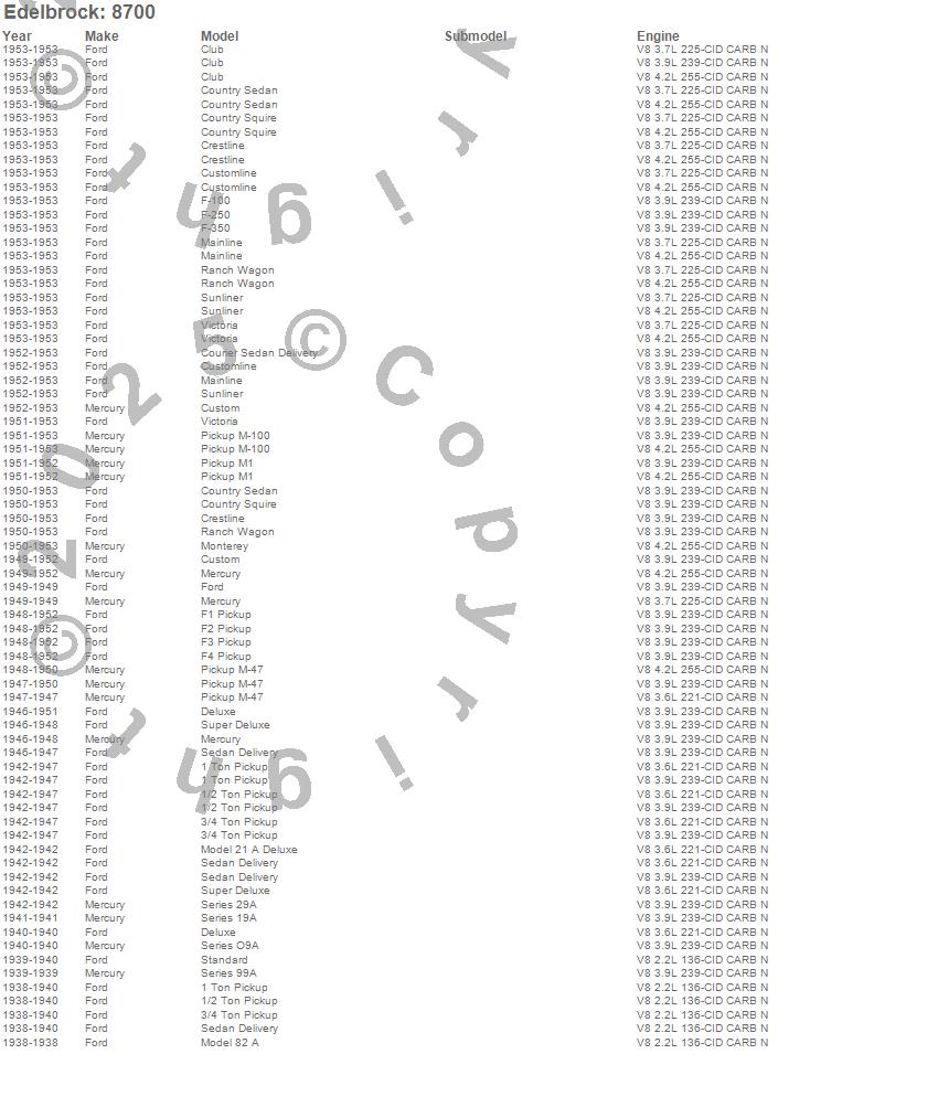 Below is an abreviated list of applications for the Intake Manifold Gasket.