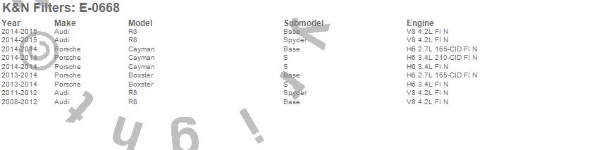 Below is an abreviated list of applications for the Air Filter.