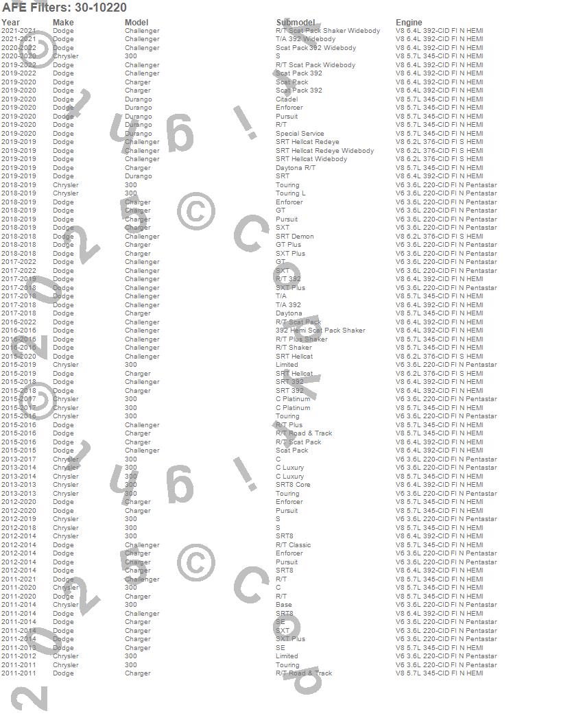 Below is an abreviated list of applications for the MagnumFLOW OE Replacement PRO 5R Air Filter.