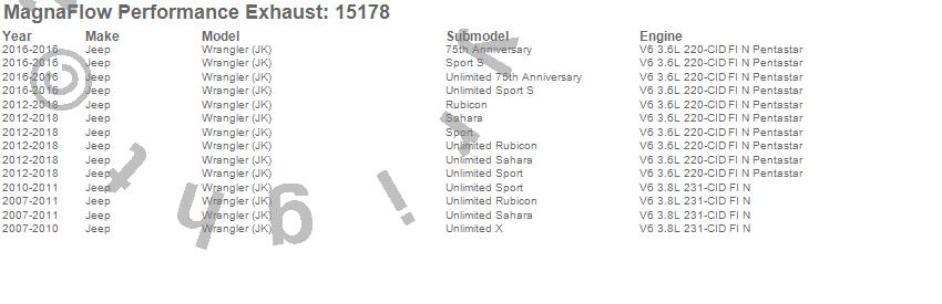 Below is an abreviated list of applications for the MF Series Performance Axle-Back Exhaust System.