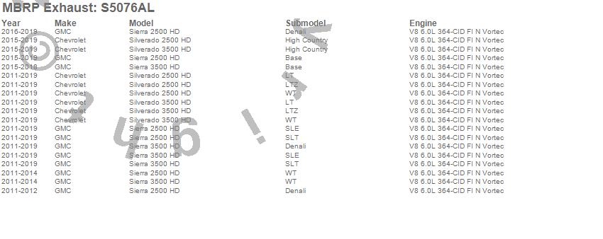 Below is an abreviated list of applications for the Installer Series Cat Back Exhaust System.