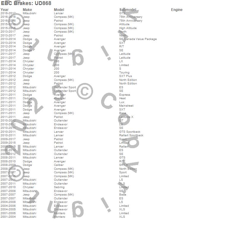 Below is an abreviated list of applications for the EBC Ultimax OEM Replacement Brake Pads.