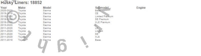 Below is an abreviated list of applications for the WeatherBeater Floor Liner.