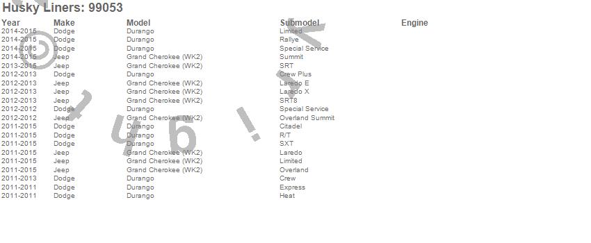 Below is an abreviated list of applications for the WeatherBeater Floor Liner.