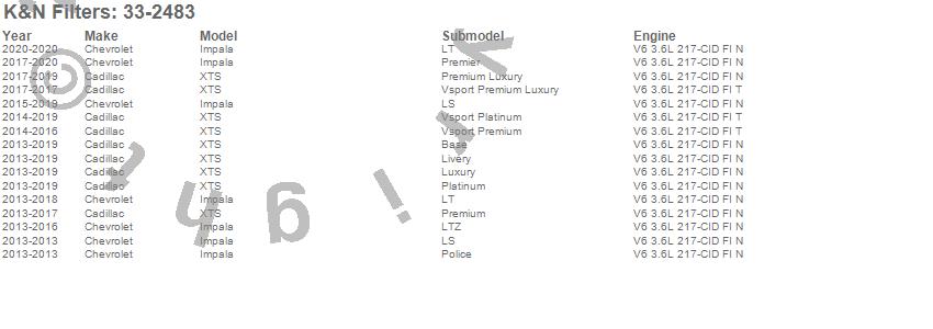 Below is an abreviated list of applications for the Air Filter.