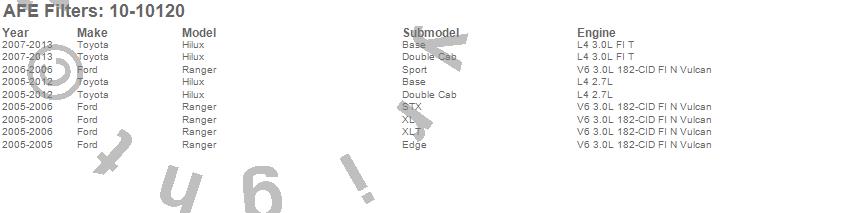 Below is an abreviated list of applications for the MagnumFLOW OE Replacement PRO 5R Air Filter.