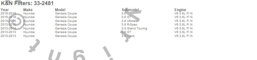 Below is an abreviated list of applications for the Air Filter.