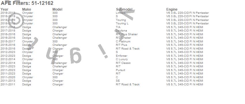Below is an abreviated list of applications for the MagnumFORCE Pro Dry S Stage-2 Intake System.