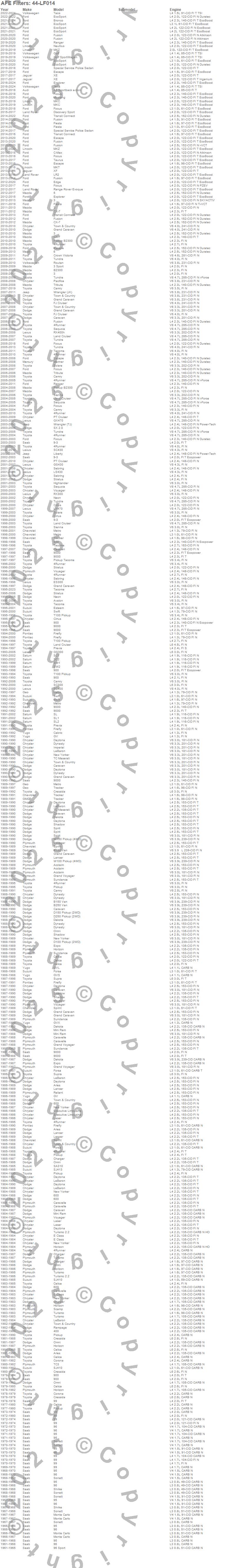 Below is an abreviated list of applications for the Pro-GUARD D2 Oil Fluid Filter.