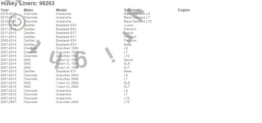 Below is an abreviated list of applications for the WeatherBeater Floor Liner.