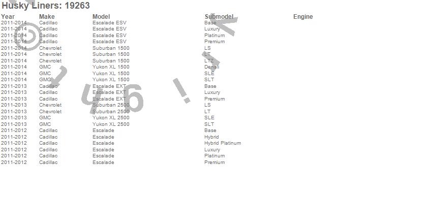 Below is an abreviated list of applications for the WeatherBeater Floor Liner.