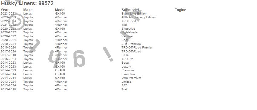Below is an abreviated list of applications for the WeatherBeater Floor Liner.