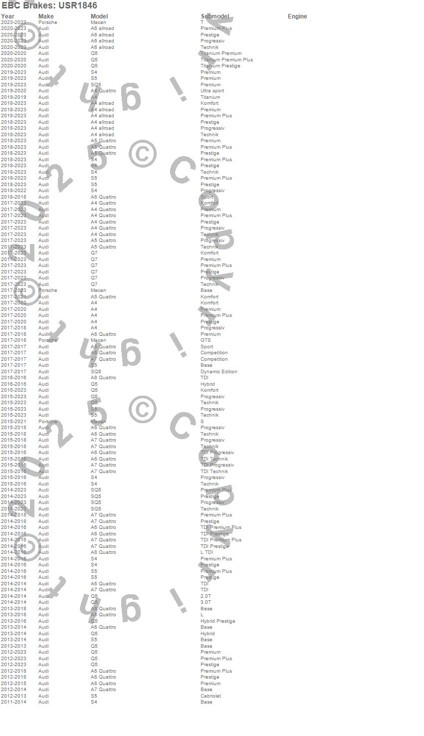 Below is an abreviated list of applications for the EBC USR Series Sport Slotted Rotor.