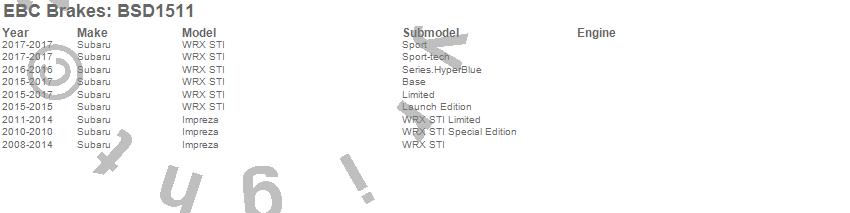 Below is an abreviated list of applications for the BSD Series Sport Rotor w/Ultra Quiet V Slot Configuration.