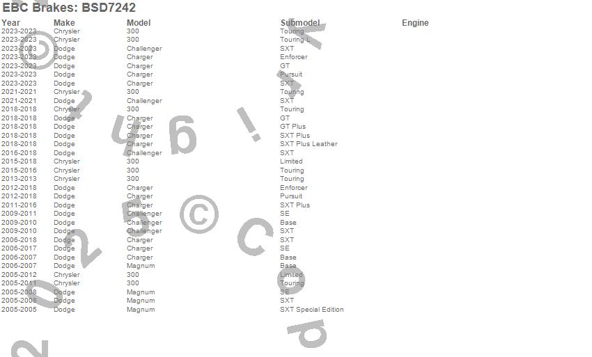 Below is an abreviated list of applications for the BSD Series Sport Rotor w/Ultra Quiet V Slot Configuration.