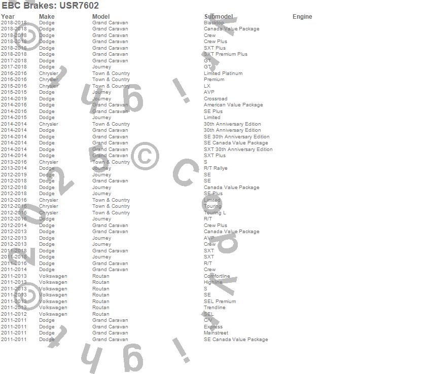 Below is an abreviated list of applications for the EBC USR Series Sport Slotted Rotor.