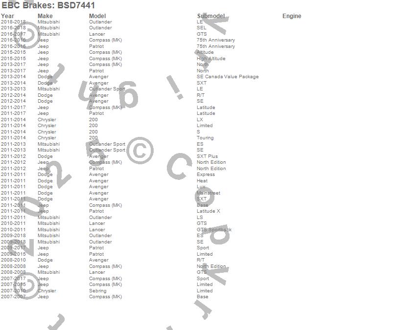 Below is an abreviated list of applications for the BSD Series Sport Rotor w/Ultra Quiet V Slot Configuration.