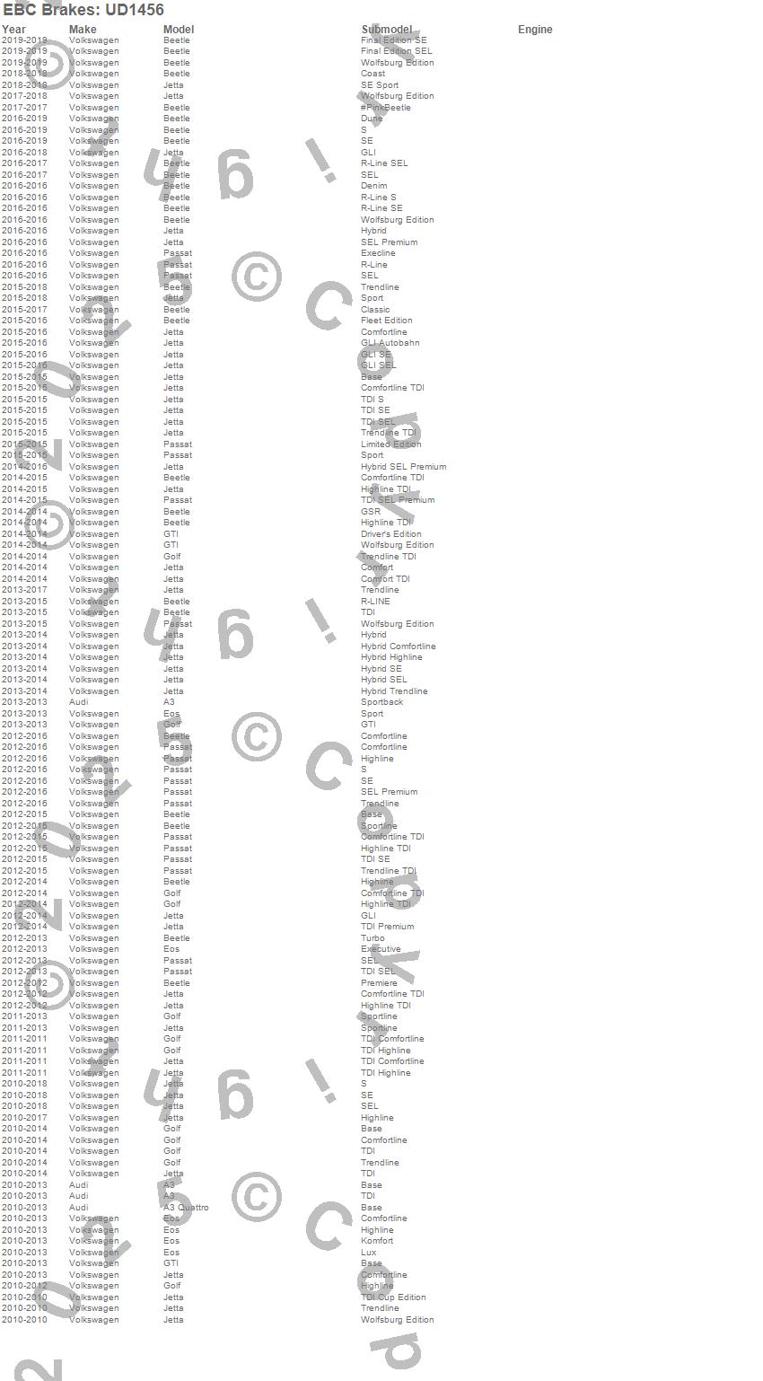 Below is an abreviated list of applications for the EBC Ultimax OEM Replacement Brake Pads. A3, A3 Quattro, Beetle, Eos, Golf, GTI, Jetta, Passat, Audi, Volkswagen, 2016, 2015, 2014, 2013, 2012, 2011, 2010 more…
