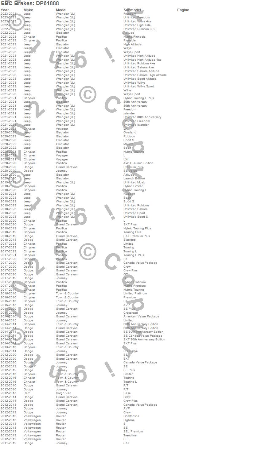 Below is an abreviated list of applications for the EBC 6000 Series Greenstuff Truck/SUV Brakes Disc Pads.