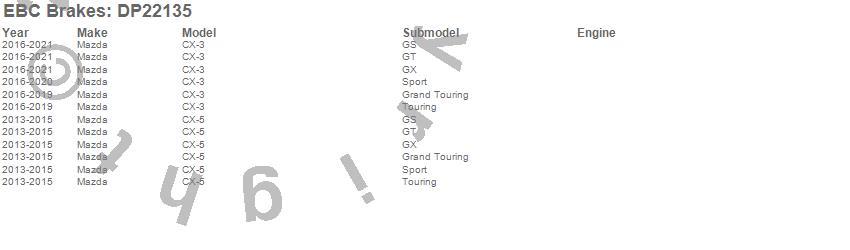 Below is an abreviated list of applications for the EBC Greenstuff 2000 Series Sport Brake Pads.