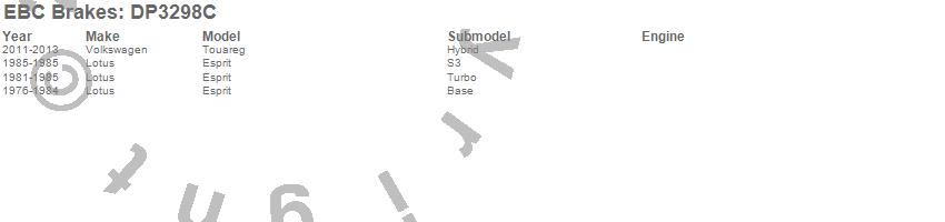 Below is an abreviated list of applications for the EBC Redstuff Ceramic Low Dust Brake Pads. Esprit, Touareg, Lotus, Volkswagen, 2013, 2012, 2011, 1985, 1984, 1983, 1982, 1981, 1980, 1979, 1978, 1977, 1976 more…
