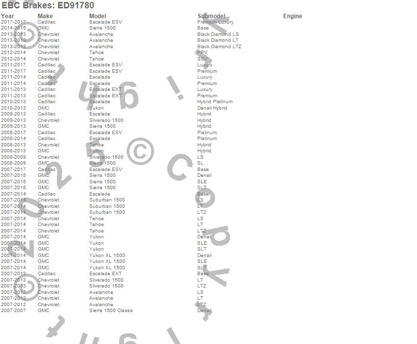Below is an abreviated list of applications for the EBC Truck/Jeep And SUV Extra Duty Brake Pads.