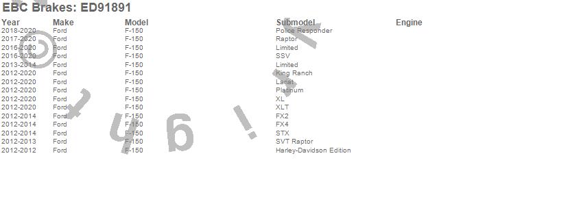 Below is an abreviated list of applications for the EBC Truck/Jeep And SUV Extra Duty Brake Pads.