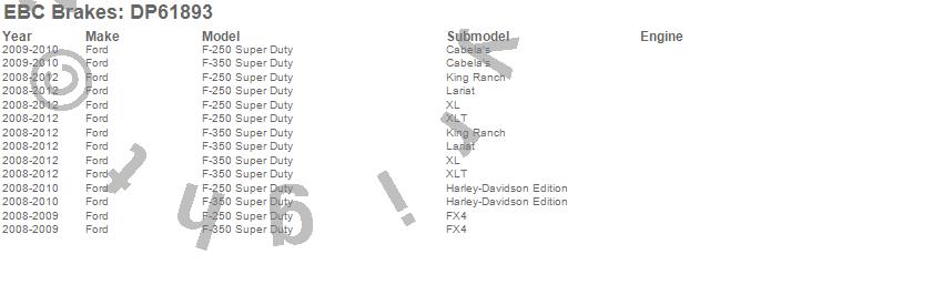 Below is an abreviated list of applications for the EBC 6000 Series Greenstuff Truck/SUV Brakes Disc Pads.