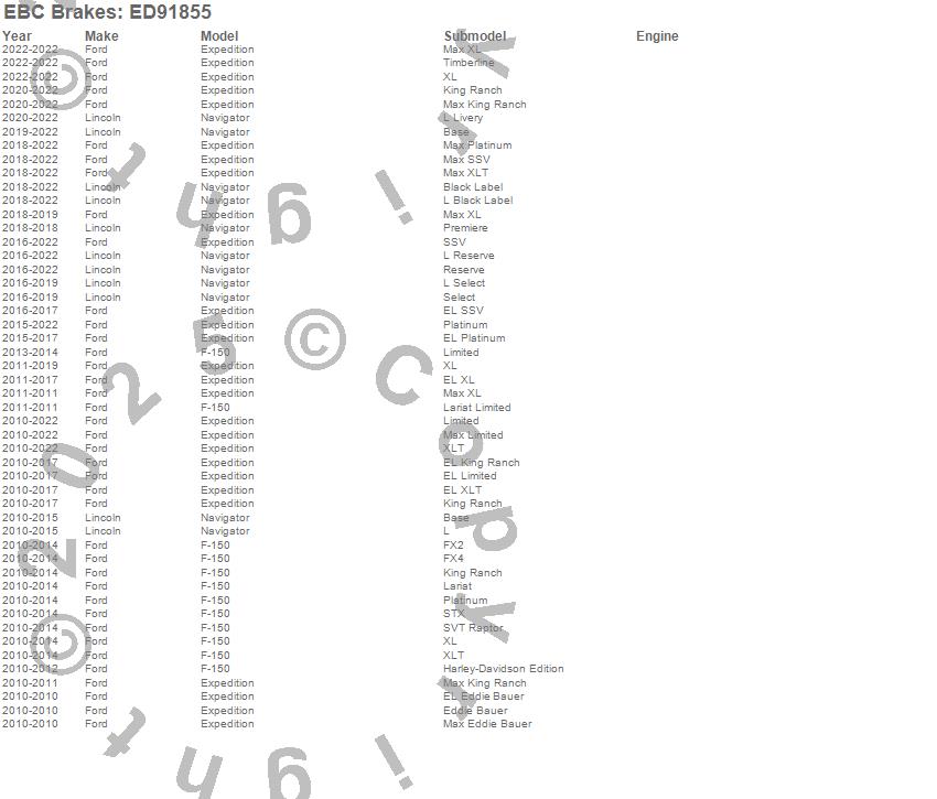 Below is an abreviated list of applications for the EBC Truck/Jeep And SUV Extra Duty Brake Pads.