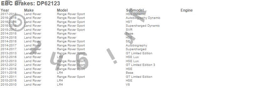 Below is an abreviated list of applications for the EBC 6000 Series Greenstuff Truck/SUV Brakes Disc Pads.