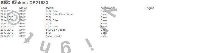 Below is an abreviated list of applications for the EBC Greenstuff 2000 Series Sport Brake Pads.