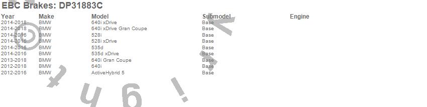 Below is an abreviated list of applications for the EBC Redstuff Ceramic Low Dust Brake Pads.