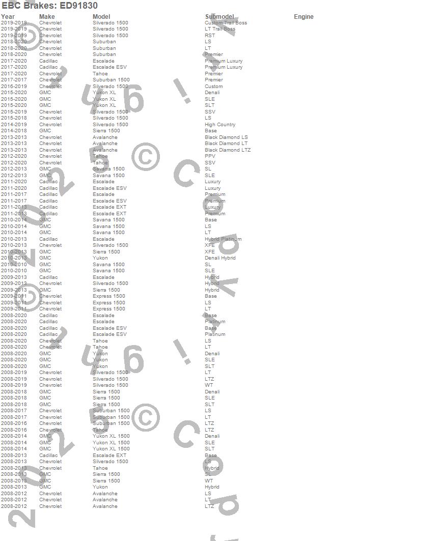 Below is an abreviated list of applications for the EBC Truck/Jeep And SUV Extra Duty Brake Pads.
