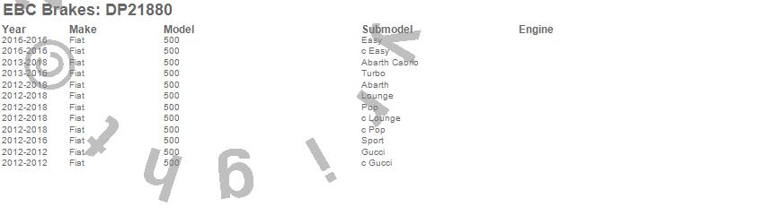 Below is an abreviated list of applications for the EBC Greenstuff 2000 Series Sport Brake Pads.