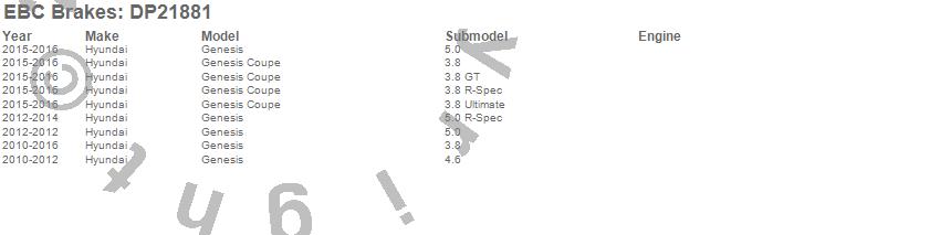Below is an abreviated list of applications for the EBC Greenstuff 2000 Series Sport Brake Pads.
