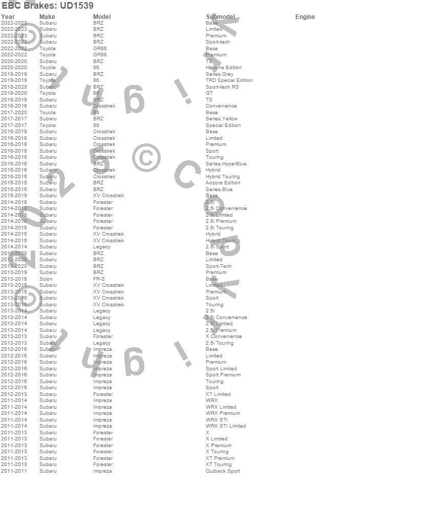 Below is an abreviated list of applications for the EBC Ultimax OEM Replacement Brake Pads.