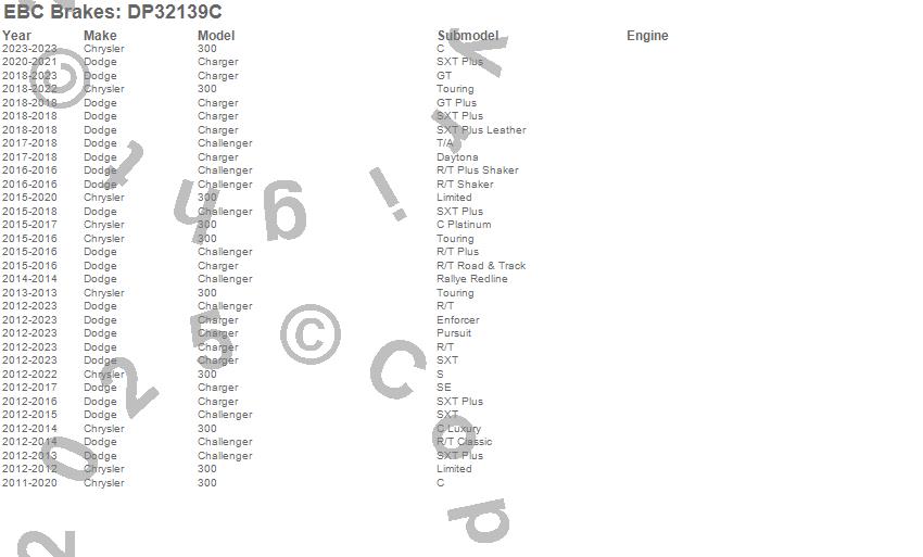 Below is an abreviated list of applications for the EBC Redstuff Ceramic Low Dust Brake Pads.
