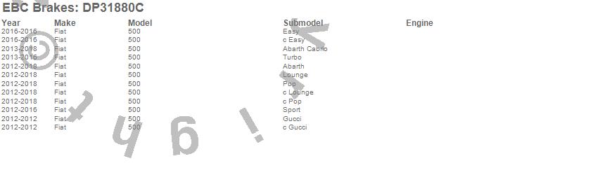 Below is an abreviated list of applications for the EBC Redstuff Ceramic Low Dust Brake Pads.