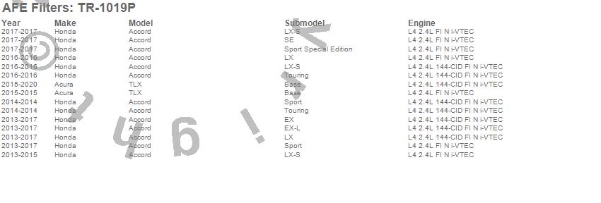 Below is an abreviated list of applications for the Takeda Stage-2 PRO DRY S Intake System.