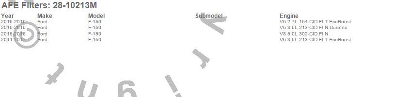 Below is an abreviated list of applications for the MagnumSHIELD EcoBoost Stage-2 Pre Filter Wrap.