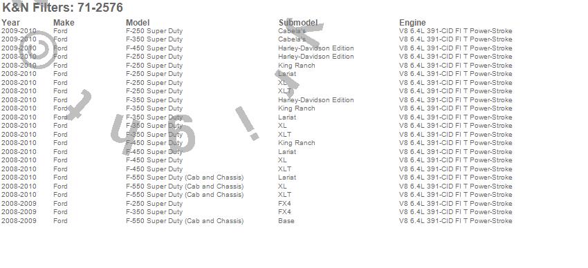 Below is an abreviated list of applications for the Blackhawk Air Induction Kit.