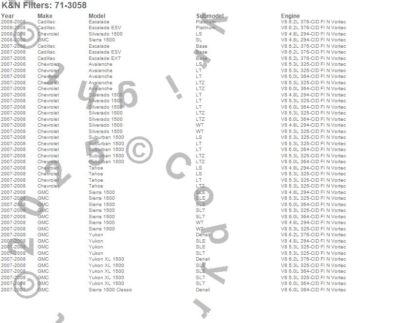 Avalanche, Escalade, Escalade ESV, Escalade EXT, Sierra 1500, Silverado 1500, Suburban 1500, Tahoe, Yukon, Yukon XL 1500, Cadillac, Chevrolet, GMC, 2008, 2007 more…