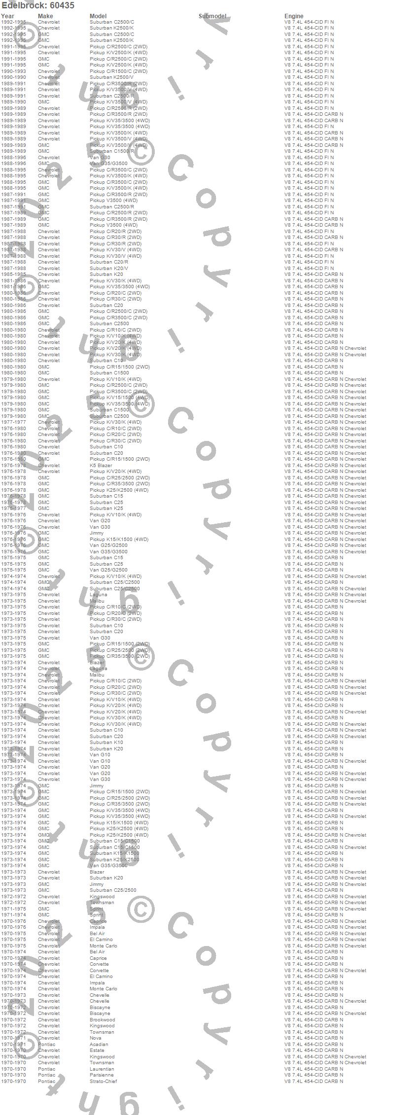 Below is an abreviated list of applications for the Performer High-Compression 454-O Cylinder Head.