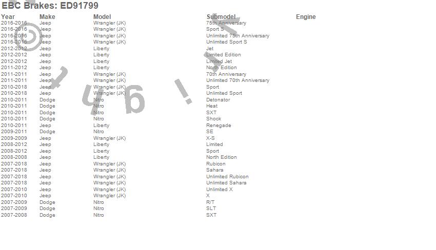 Below is an abreviated list of applications for the EBC Truck/Jeep And SUV Extra Duty Brake Pads.
