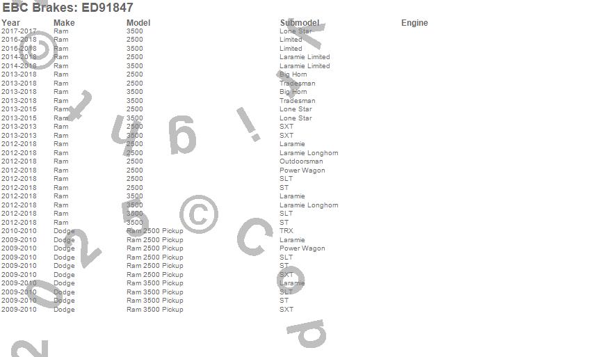 Below is an abreviated list of applications for the EBC Truck/Jeep And SUV Extra Duty Brake Pads.