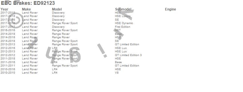 Below is an abreviated list of applications for the EBC Truck/Jeep And SUV Extra Duty Brake Pads.