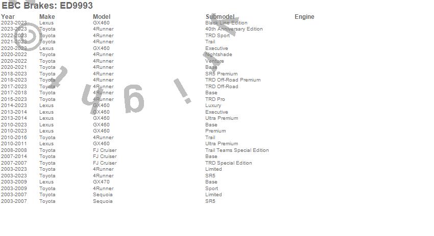 Below is an abreviated list of applications for the EBC Truck/Jeep And SUV Extra Duty Brake Pads.