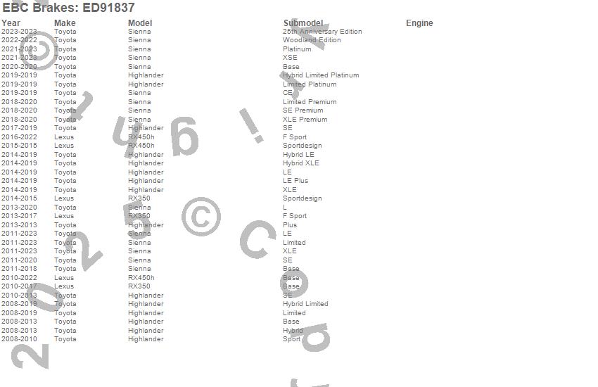 Below is an abreviated list of applications for the EBC Truck/Jeep And SUV Extra Duty Brake Pads.