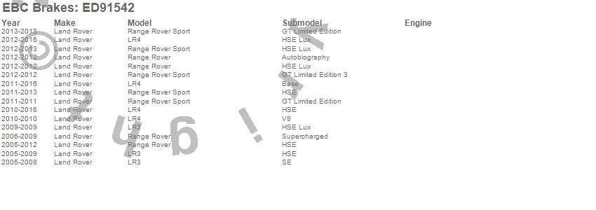 Below is an abreviated list of applications for the EBC Truck/Jeep And SUV Extra Duty Brake Pads.