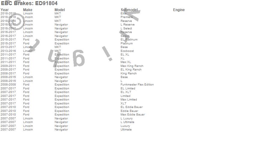 Below is an abreviated list of applications for the EBC Truck/Jeep And SUV Extra Duty Brake Pads.